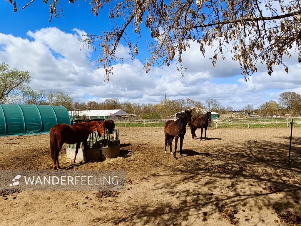 Pferde auf einem Reiterhof in Blankenfelde, Berlin, Deutschland