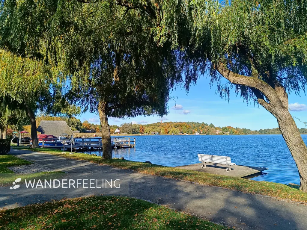 Uferpromenade in Krakow am See, Mecklenburgische Seenplatte, Mecklenburg-Vorpommern, Deutschland